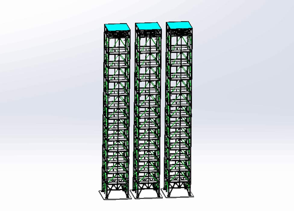 1、pcs圓形塔庫(kù)沒有長(zhǎng)條形水平方向的巷道,而是多層圓柱形結(jié)構(gòu),每層在圓周方向輻射形布置存車位,每層8個(gè)車位。
