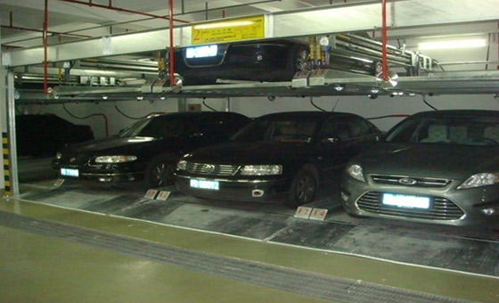 工作原理:每個(gè)車位均有載車板,所需存取車輛的載車板通過(guò)上升、下降、橫移等運(yùn)動(dòng)過(guò)程到達(dá)地面層,駕駛員進(jìn)入車庫(kù),存取車輛,完成存取過(guò)程。停泊在此類車庫(kù)內(nèi)地面層的車只作橫移,不必升降,上層車位或地坑下層車位需通過(guò)中間層橫移出空位,將載車板升或降到地面層,駕駛員才可以進(jìn)入車庫(kù)內(nèi)將汽車開(kāi)進(jìn)或開(kāi)出車庫(kù)。
